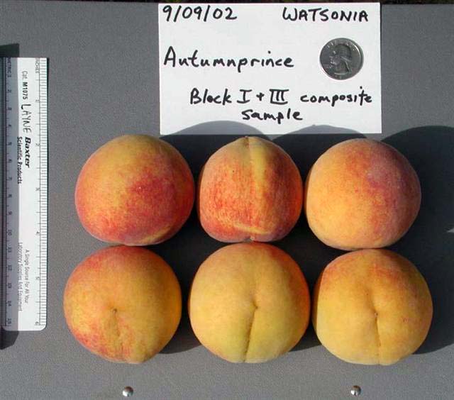 in 1997. Fruit: Large; round; 8cm diameter; 60% dull red blush; freestone;