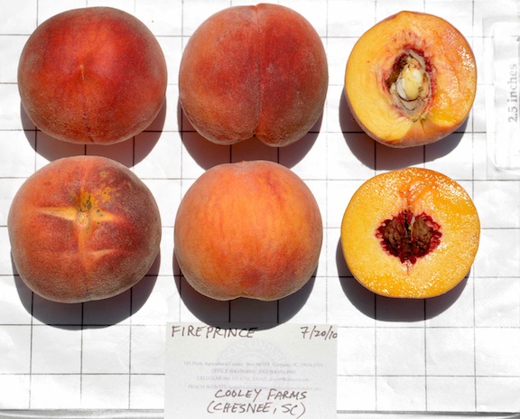 Orig. at U.S. Dept. of Agriculture S.E. Fruit & Tree Nut Res. Lab., Byron, Ga. Introd. by W.R. Okie. [(Hal-Bertax Fireglow) x Redglobe] x [(Sunhigh x Southland) x Redcap]; cross made in 1964 by V.E. Prince; selected in 1966; tested as FV5-1942 and BY5-1942. Fruit: large; skin attractive red on yellow ground color, light pubescence; flesh yellow, melting; freestone. Ripens about 10 to 12 days after Redhaven; ripens between Harvester and Redglobe. Flowers showy, self-fertile; leaf glands reniform; moderately resistant to bacterial spot. Chilling requirement about 850 h.