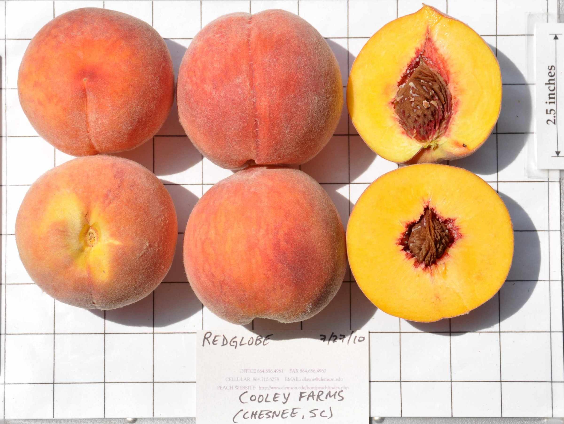 Orig. in Beltsville, Md., by the U.S. Dept. of Agriculture. Introd. in 1954. (Admiral Dewey x St. John) x Fireglow; cross made in 1940; selected in 1944; tested as USDA B7398. Fruit: medium to large; round, halves equal; skin color especially bright and attractive, at maturity about three-fourths covered with bright red over yellow, pubescence heavy; flesh yellow, especially free from any red through the flesh, but with some red around the stone, very firm melting, fine-textured, flavor fair to good; ships well; pit size medium, free; acceptable for canning, attractive as a frozen product; well-suited for long-distance shipment; ripens about 15 days before Elberta. Tree: productive; vigorous; susceptibility to bacterial spot disease seems similar to Elberta; buds relatively tender to frost; flower large, showy, deep pink, self-fruitful; leaf glands reniform; chilling requirement of 850 h.