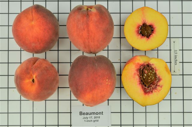 Yellow-fleshed, freestone peach from Michigan State University, by A. Iezzoni and W. Shane. Tested as MSU26,introduced in 2003. USPP 18,139; 23 Oct. 2007. Fruit, uniform, globose to slightly oblong, large, 60% to 80% medium dark solid/slightly striped blush on yellow background. Melting, freestone, very good firmness for shipping market. Ripens with Loring, 18 d after Redhaven. Tree medium spreading, productive, fruit harvested with few pickings.