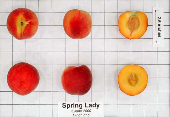 Orig. by G. Merrill, Red Bluff, Calif. Plant patent 4661; 3 Mar. 1981. Unknown parentage. Fruit: medium; very firm; globose; blushed mottled red over yellow skin; flesh yellow, freestone, melting, beige stone, ripening 5 or 6 days after Springcrest. Flowers pink, medium; leaf glands reniform. Tree: large and vigorous.
